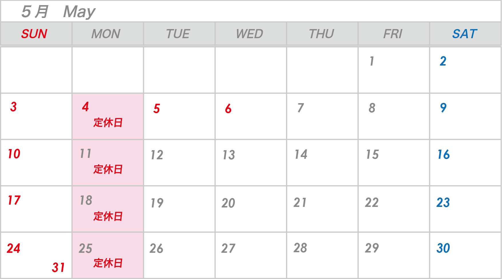 【定 休 日】 毎週月曜日、他