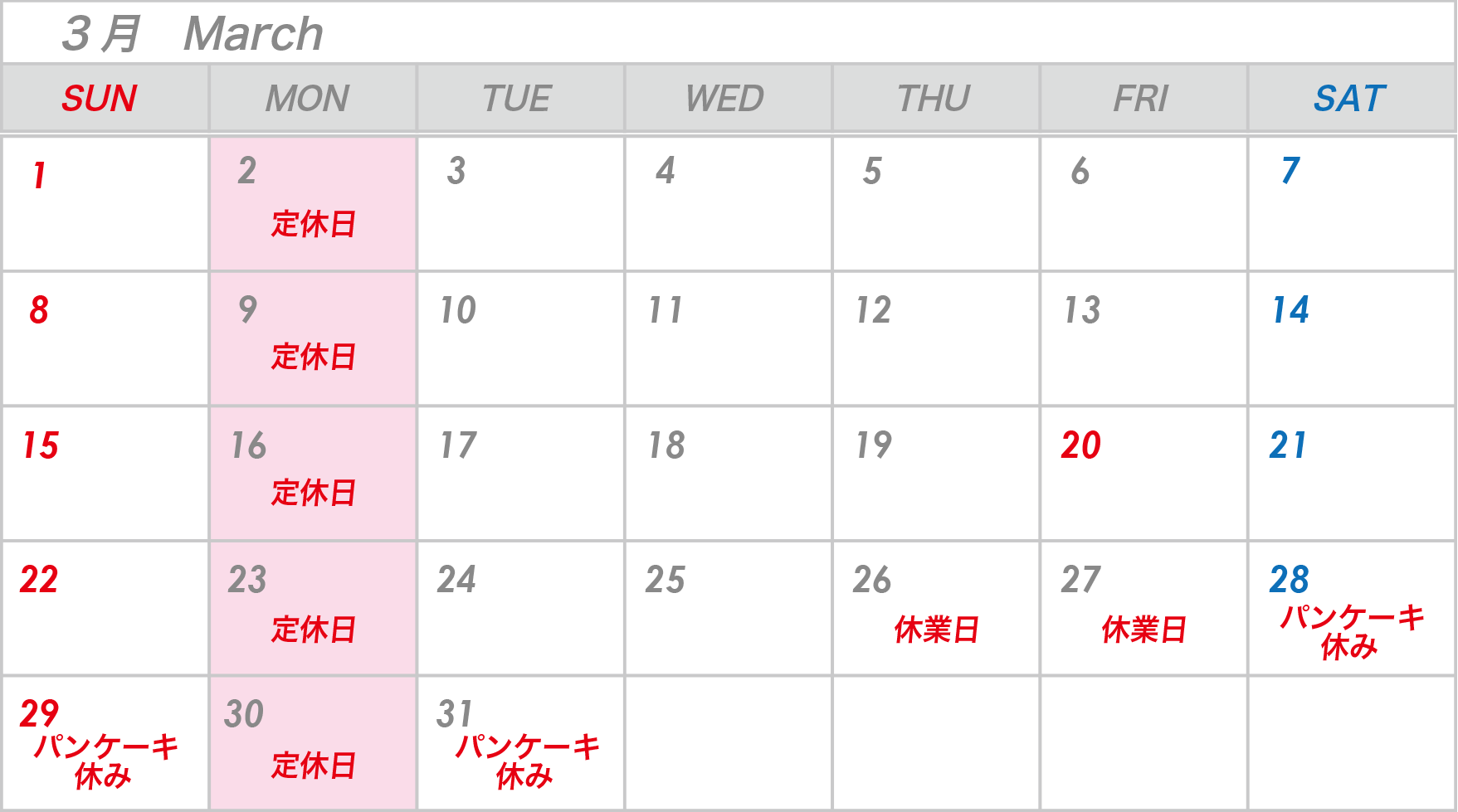 土日祝 10:00〜15:30(14:30ラストオーダー)